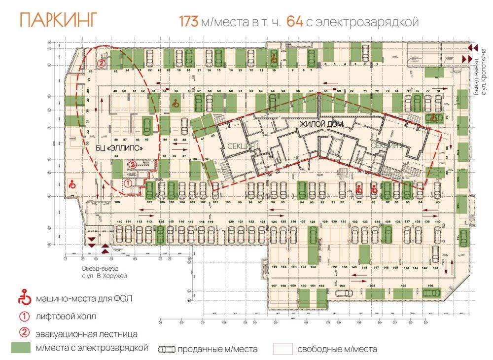 Жилой дом Кропоткина, 63 (2Б по г/п). Паркинг на 173 машино-места