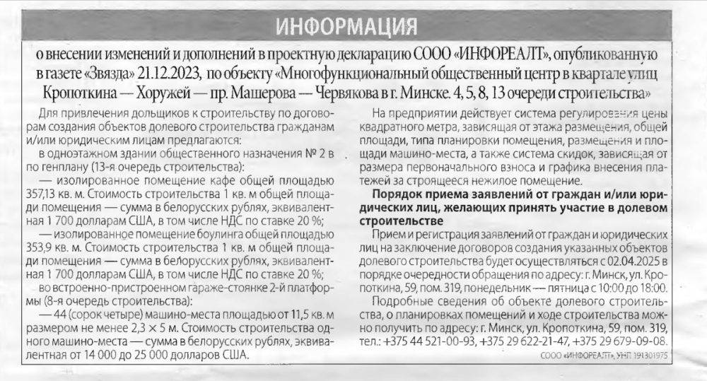 Проектная декларация паркинг жилого дома 4АБ 3-я очередь строительства